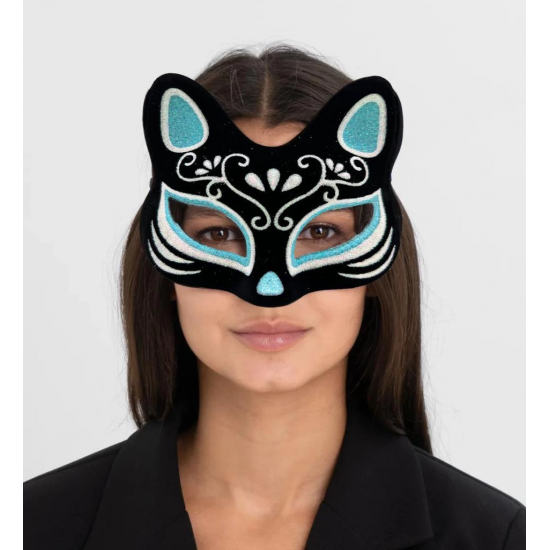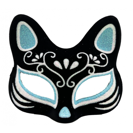 Mey İthalat® Siyah Renk Süet Kaplama Üzeri Gümüş Mavi Simli Kedi Maskesi 17x14 cm