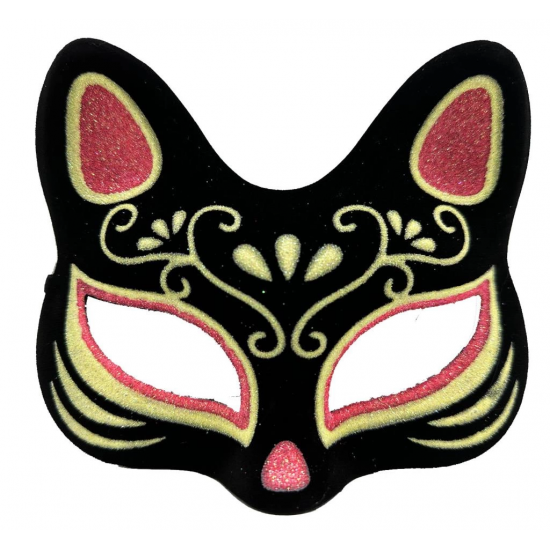 Mey İthalat® Siyah Renk Süet Kaplama Üzeri Kırmızı Sarı Simli Kedi Maskesi 17x14 cm