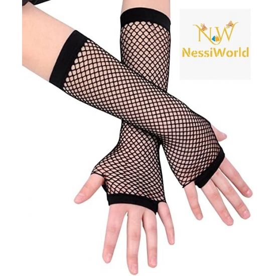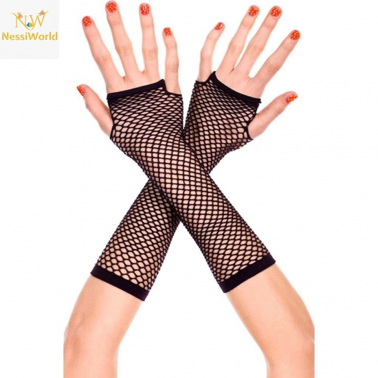 Mey İthalat® Siyah Renk Uzun File Eldiven - Örgü Eldiven Siyah Renk