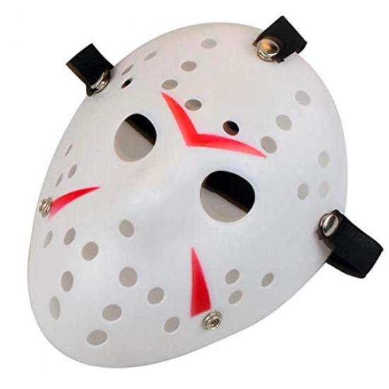Mey İthalat® Beyaz Renk Kırmızı Çizgili Tam Yüz Hokey Jason Maskesi Hannibal Maskesi