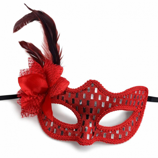 Mey İthalat® Kırmızı Tüylü Balo Maskesi Kadın Parti Aksesuarı