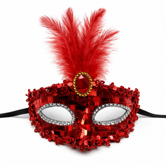 Mey İthalat® Lüks Kırmızı Tüylü Taşlı Balo Maskesi