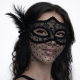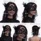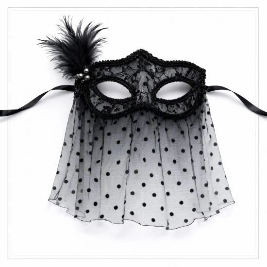 Mey İthalat® Siyah Dantel Tüllü Peçeli Parti Maskesi - Tüylü İnci Detaylı