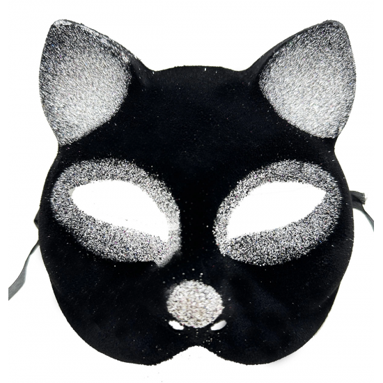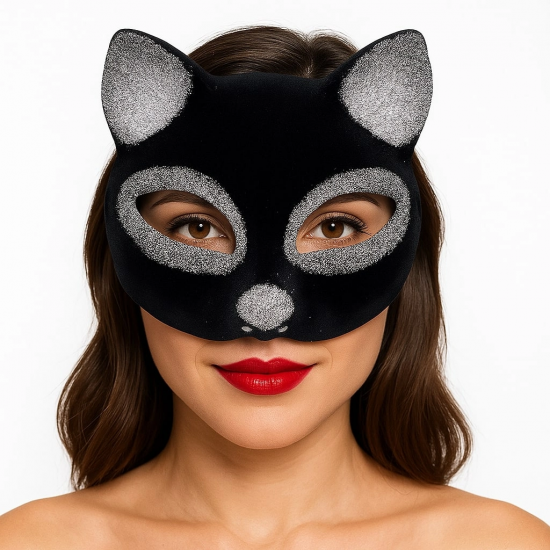 Balolar ve özel günler için mükemmel bir aksesuar olan Siyah Renk Gümüş Simli Süet Kedi Maskesi ile göz kamaştırın!