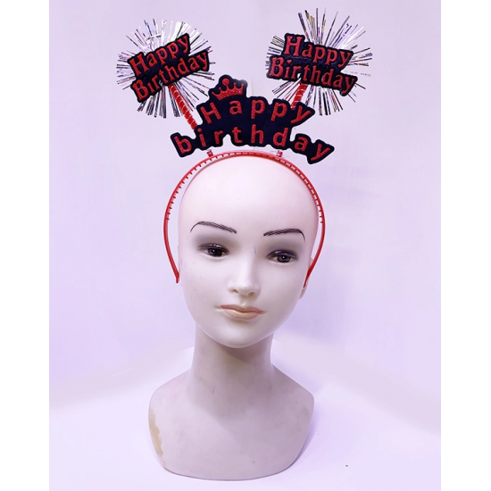 Mey İthalat® Happy Birthday Yazılı Püsküllü Neon Kırmızı Renk Doğum Günü Tacı 22x19 cm