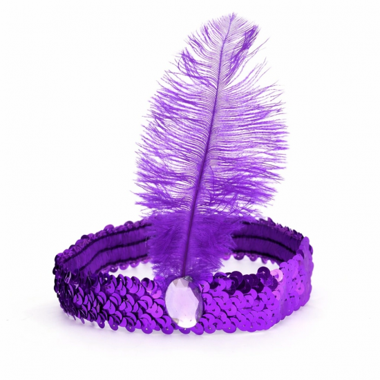 Mey İthalat® Mor Tüylü Retro Çarliston Saç Bandı - 70-80-90’lar Parti Tacı