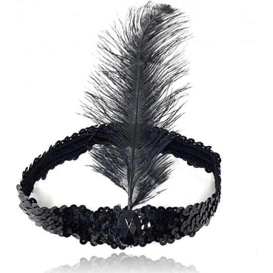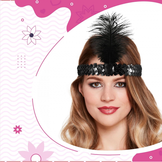 Mey İthalat® Siyah Renk Çarliston Başlık 90 lı Yıllar 80 li Yıllar Tüylü Saç Bandı