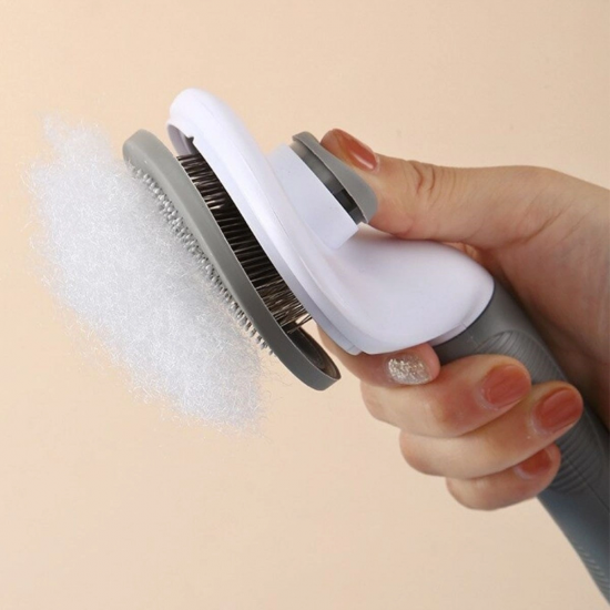 Kedi Köpek Tüy Toplayıcı Kendini Temizleyebilen Ergonomik Saplı Kullanımı Rahat Kaymaz Evcil Hayvan Tarağı Gri