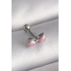 Mey İthalat® 316L Çelik Gümüş Renk Pembe Kurdele Zirkon Taş Detay Tragus Piercing
