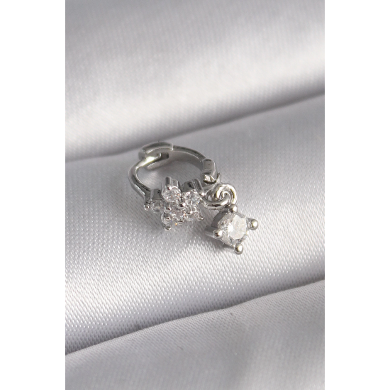 Mey İthalat® 316L Çelik Gümüş Renk Zirkon Taşlı Çiçek Model Sallantı Detay Tragus Piercing