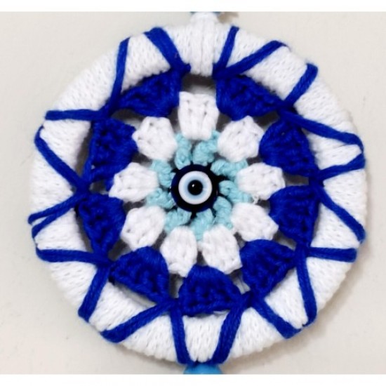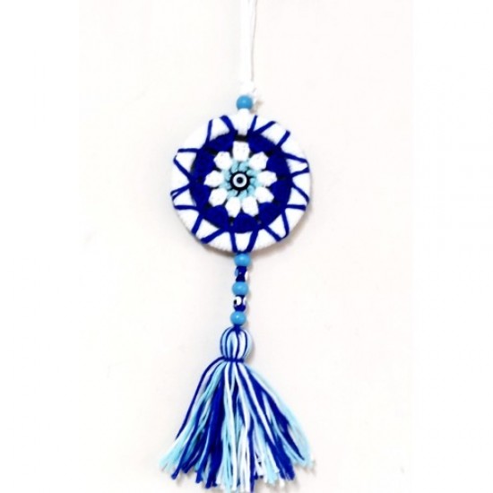 Ponponlu Nazar Boncuğu Desenli El Yapımı Mini Kapı Süsü