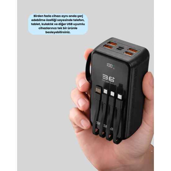 Hızlı şarj destekli taşınabilir şarj cihazı, yüksek kapasitesi sayesinde birden fazla şarj döngüsü sunar. Akıllı enerji yönetimi sayesinde cihazlarınızı aşırı akım ve voltaja karşı korur.Çoklu çıkışları sayesinde farklı marka ve model cihazlarla uyumludur. Ergonomik tasarımı, uzun süreli kullanımlarda bile konfor sağlar.