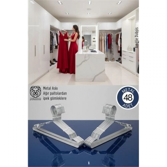 Mey İthalat® 48'li Lüks Çelik Elbise Askısı - İz Yapmayan İnce Tasarım Metal Kıyafet Düzenleyici (40cm)