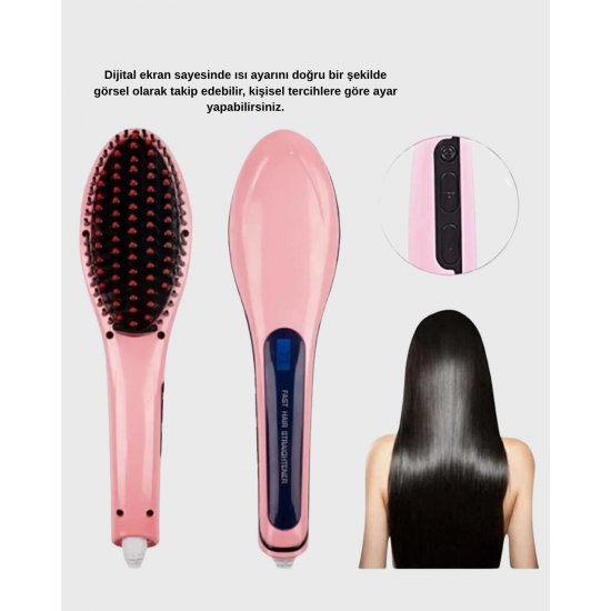 Bu saç düzleştirici, profesyonel seviyede sonuçlar sunarak saç bakım rutininizi daha pratik ve etkili hale getirir. 5 kademeli ısı ayarı sayesinde saç yapınıza en uygun sıcaklığı seçebilir, ister düşük ısıda nazik bir düzleştirme isterseniz yüksek ısıda hızlı ve güçlü bir sonuç elde edebilirsiniz. 80°C’den 230°C’ye uzanan geniş ısı aralığı her saç tipi için uyumluluk sağlar.Seramik kaplama plakalar, ısıyı eşit şekilde yayarak saç yüzeyini homojen bir şekilde düzleştirir. Bu teknoloji saçın yanmasını ve aşırı ısınmasını önleyerek daha sağlıklı bir şekillendirme deneyimi oluşturur. Saç uçlarındaki kırılmaları önemli ölçüde azaltır ve saçlara parlak, canlı bir görünüm kazandırır. İyon teknolojisi ise elektriklenme problemini ortadan kaldırarak saçların gün boyu düz ve pürüzsüz kalmasını sağlar.Cihazın dijital ekranı, sıcaklık değerlerini net bir şekilde görmenize yardımcı olur. Hızlı ısınma özelliği yalnızca birkaç dakika içinde cihazı ideal sıcaklığa getirir, bu da yoğun tempo içerisinde büyük zaman kazandırır. Kullanım kolaylığını artıran 360 derece dönebilen kablo; kabloların bükülmesini, kırılmasını ve kullanım zorluklarını ortadan kaldırır.Ergonomik tasarımı sayesinde elinizde rahatça kavranır ve uzun süre kullanımda bile yorulma yapmaz. Çift voltaj destekli olması, cihazın yurt dışında da güvenle kullanılmasını sağlar; bu da seyahat eden kullanıcılar için büyük bir avantaj oluşturur. Hafif, güçlü ve dayanıklı yapısıyla profesyonel saç düzleştirici uzun ömürlü bir kullanım sunar.Her gün pürüzsüz, parlak ve sağlıklı görünen saçlara ulaşmak isteyenler için bu saç düzleştirici, mükemmel bir kombinasyona sahiptir: güçlü performans, hassas ısı kontrolü ve saç dostu teknoloji.