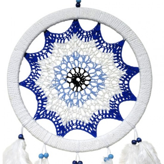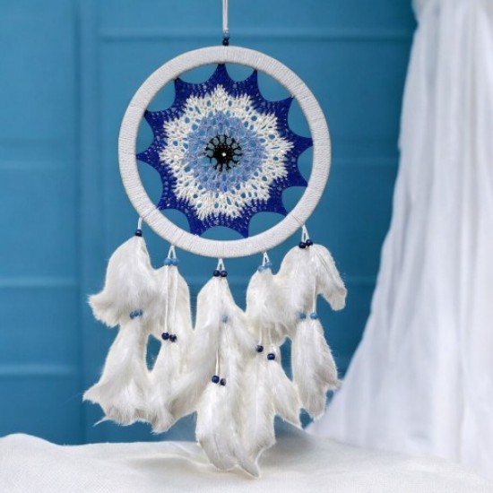 Saks Mavisi Nazar Motifli Kuş Tüylü Duvar Süsü