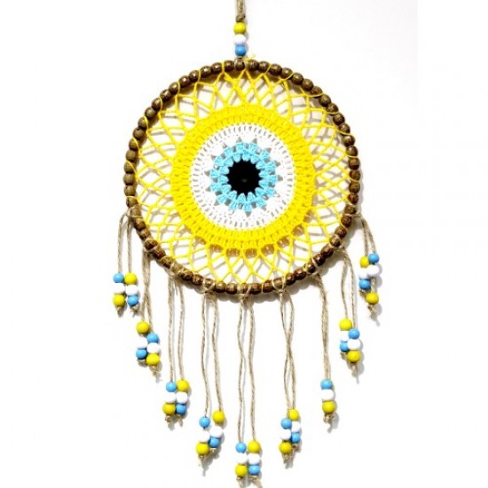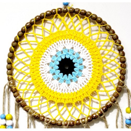 Sarı Motifli Renkli Boncuklu El Yapımı Duvar Süsü