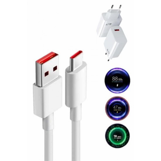 Mey İthalat® Hızlı Şarj Aleti Adaptörü Kablo Seti 67W Uzun Ömürlü Beyaz