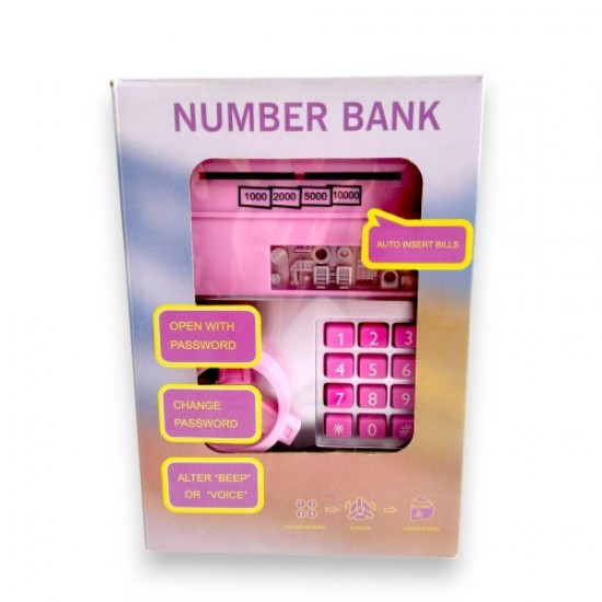 Atm tarzı para yükleme mekanizmasıyla kağıt paralarınızı kendi içine kendisi çeker, üst kısmından da madeni paralar atılabilir. Şifreli güvenlik sistemiyle kapağı ancak doğru şifre girildiğinde açılan ürün içine para atıldığında, şifre girildiğinde ve kapağı açıldığında sesli ve ışıklı uyarıda bulunur. Şifreli atm kasa kumbaranın şifresi 0000 (dört adet sıfır) dır. Şifreli kasa  tasarımına sahiptir. 4 haneli şifresi istendiğinde değiştirilebilir. Işıklı ve sesli uyarı işaretleri bulunur. Banknot ve bozuk para ile kullanılabilir. Kağıt parayı otomatik olarak içine çeker. Geniş hazneye sahiptir. Abs materyalden imal edilmiştir. 3 adet aa kalem pille çalışır (piller pakete dahil değildir). Ürün ölçüleri: Ebat: 12.5 cm x 13 cm x 20 cm Ağırlık: 590 gr Pembe gönderilecektir.