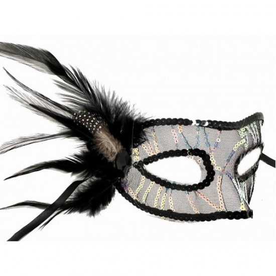 Siyah Yandan Tüylü Pul Payet Maskesi