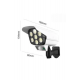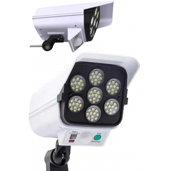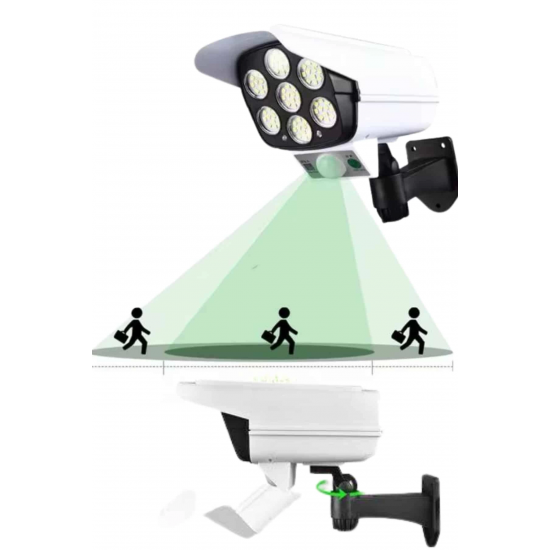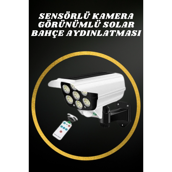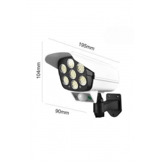 Bu güneş enerjili güvenlik ışığı, çevre dostu tasarımı ve pratik kullanımı ile hem güvenlik hem de dekoratif amaçlarla ideal bir çözümdür. Hem  kamera görünümü  hırsızları caydırma etkisi yaratır hem de bahçeniz için güçlü bir aydınlatma sunar. Dahili PIR hareket sensörü, 10 ila 20 feet mesafede hareketi algılayarak gece boyunca ışığın otomatik olarak yanmasını sağlar. Bu özellik, evinizin etrafındaki alanları güvenli hale getirir. Güneş paneli, güneş ışığını emerek şarj olur ve ışığın enerji ihtiyacını karşılar, böylece elektrik tüketimi ve çevreye olan etkisi minimuma iner. Pil kapasitesiyle de, düşük ışık modunda bile yaklaşık 40 saate kadar çalışma süresi sunar. Kurulumu oldukça basittir ve güneş paneli ve ışık kaynağının yönü 5 eksenli rotasyon sayesinde rahatça ayarlanabilir, böylece istediğiniz alanı verimli bir şekilde aydınlatabilirsiniz. IP66 su geçirmezlik standardına sahip olması, ürünün yağmur, kar gibi dış hava koşullarında bile dayanıklı olmasını sağlar. Bu ışık, güvenlik ihtiyacınızı karşılamakla kalmaz, aynı zamanda dış mekanlarınızı şık bir şekilde aydınlatarak, bahçeniz, verandanız, garajınız ya da yol kenarlarınıza estetik bir görünüm kazandırır.
