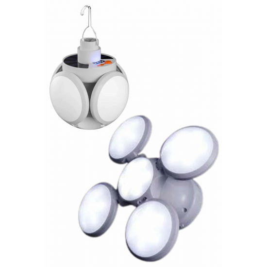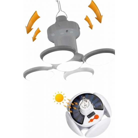 Solar Güneş Enerjisi ve USB Şarjlı 5 Kanatlı Taşınabilir Lamba – Çok Fonksiyonlu ve Pratik Aydınlatma ÇözümüHer türlü açık hava etkinliğinde, acil durumlarda veya günlük yaşamda ihtiyaç duyduğunuz her an pratik bir aydınlatma çözümü sunan Solar Güneş Enerjisi ve USB Şarjlı 5 Kanatlı Lamba, güçlü aydınlatma kapasitesi ve taşınabilir yapısıyla fark yaratır. Hem güneş enerjisiyle hem de USB ile şarj edilebilir özelliği sayesinde her koşulda güvenilir bir ışık kaynağı sağlar.Üzerindeki askı aparatı ile bu pratik lamba, çadırdan ağaca, arabanın içinde ya da evinizin çeşitli alanlarında kolaylıkla kullanılabilir. Katlanabilir tasarımı, ışık açısını istediğiniz gibi ayarlamanızı sağlayarak, geniş bir alanı etkili şekilde aydınlatmanıza olanak tanır. Bu özellik, özellikle dış mekan aktiviteleri ve acil durumlar için son derece kullanışlıdır.Solar panel sayesinde doğa dostu bir enerji kaynağı sunan bu lamba, 5.5V polikristal silikon güneş paneli ile şarj edilebilirken, USB kablosu ile de şarj edilerek her iki seçeneği de esnek şekilde kullanmanızı sağlar. Bu, size her koşulda enerji sağlamanın yanı sıra çevreye duyarlı bir kullanım deneyimi sunar.45 LED ışık kaynağı, 6 farklı ışık moduyla ortamınıza uygun ışık düzeyini ayarlamanızı sağlar. Hem güçlü ışık modlarında hem de düşük ışık ihtiyaçlarınızda kullanabileceğiniz 5 farklı ışık modu ile çok yönlü kullanım sağlar. Su geçirmez IP65 özelliği, dış mekan koşullarına karşı dayanıklıdır ve suya dayanıklı yapısıyla yağmurlu havalarda bile güvenle kullanılabilir.Teknik Özellikler:Güneş Paneli: 5.5V polikristal silikon güneş paneliPil: 18650 lityum pil, 2400mAhIşık Kaynağı: 45 LEDÇalışma Süresi: 6-8 saatŞarj Süresi: Solar şarj için 8 saat / USB şarj ile 6 saatŞarj Yöntemi: Solar şarj (DC 3.5V) / USB şarj (voltaj 4.5V)Su Geçirmezlik: IP65Renk Sıcaklığı: 6500KÜrün Boyutu: 14 cm * 11.5 cmPaket İçeriği:1 Adet 5 Kanatlı Solar Pratik LambaBu taşınabilir solar lamba, hem acil durumlarda hem de kamp, yürüyüş gibi açık hava etkinliklerinde her zaman yanınızda bulundurabileceğiniz, dayanıklı ve verimli bir aydınlatma aracıdır. Kolay şarj edilebilir ve pratik kullanımı ile ihtiyaç duyduğunuz her an size aydınlık sağlar.