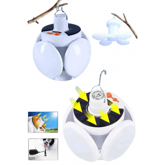 Mey İthalat® Katlanabilir Askılı Kamp Lambası 5 Kanatlı Pratik Güneş Enerjili