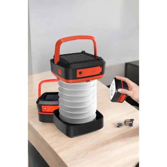 Mey İthalat® Katlanabilir Kamp Lambası Solar Fener Görünümlü 3 Kademeli Şarjlı