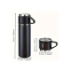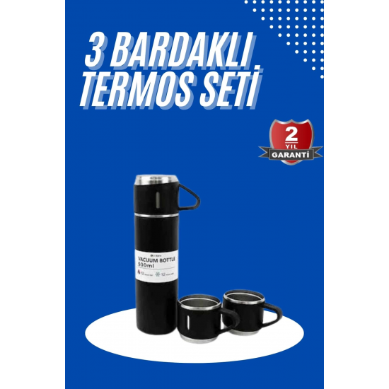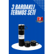 Mey İthalat® Termos Seti 3'lü Bardak Seti Isı Dayanıklı Siyah Paslanmaz Çelik Vakumlu