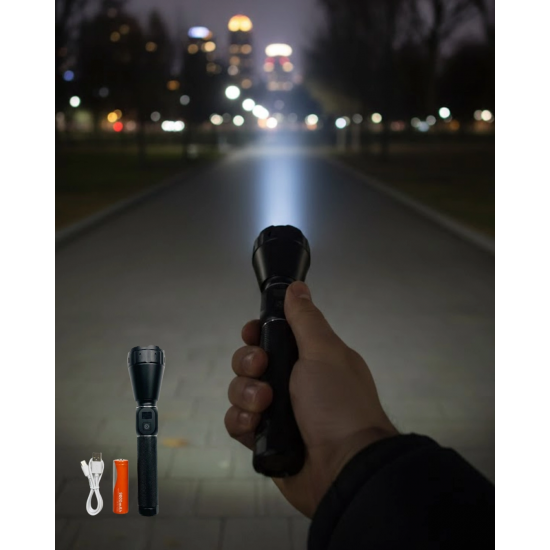 Mey İthalat® Yüksek Lümenli Şarjlı El Feneri 9000mAh Güçlü Işık ve Taşıma Çantalı Set