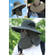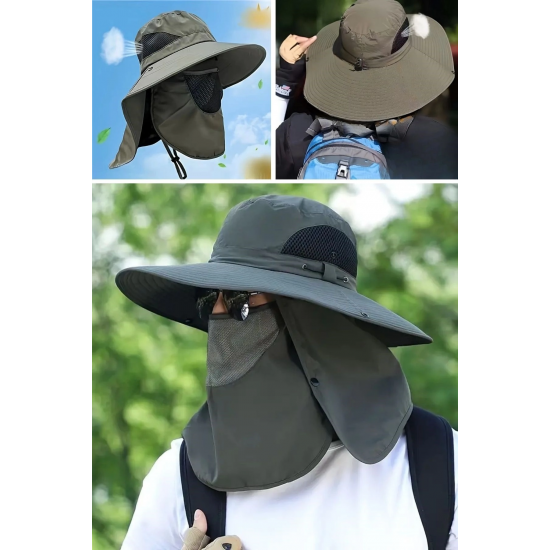 Güneş Koruyuculu Nefes Alabilen Maskeli ve Boyun Kapaklı Geniş Kenarlı Balıkçı Şapkası