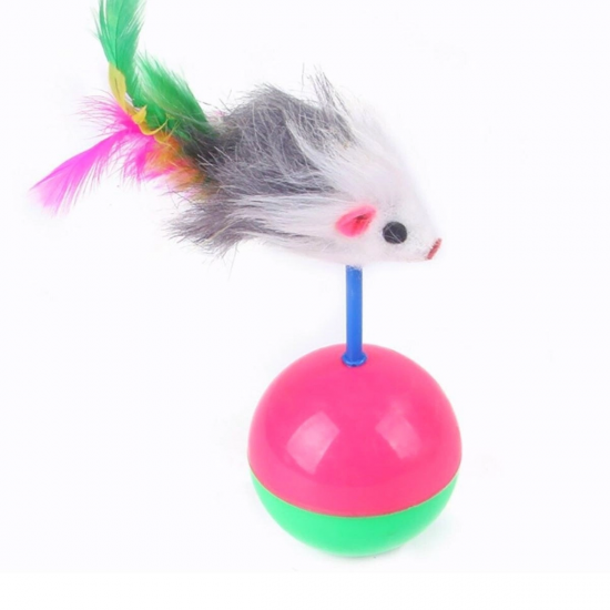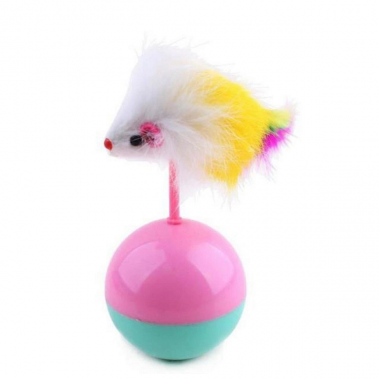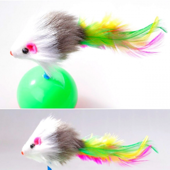 Mey İthalat® Kedi Oyun Topu Tüylü Fareli Hacı Yatmaz Eğitici Yavru Kedi Fare Kovalama Oyuncağı