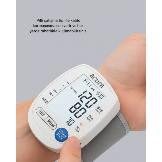 Hem pilli hem şarjlı kullanım sunan bu dijital bilek tansiyon aleti, pratik ve güvenilir ölçüm yapabilmeniz için son teknoloji ile donatılmıştır. Bileğe kolayca yerleştirilen cihaz tek tuşla ölçümü başlatır ve saniyeler içinde tansiyon sonuçlarını ekranda gösterir. Büyük dijital ekran, özellikle yaşlı kullanıcılar için büyük bir avantaj sağlar. Hafıza özelliği, ölçümlerinizi kaydederek tansiyon değişimlerinizi düzenli olarak takip etmenize yardımcı olur. Bu sayede sağlık kontrolünüz daha düzenli hâle gelir. Pilli kullanım, dış mekânda özgürlük sağlarken, şarjlı kullanım ekonomik ve uzun ömürlüdür. Hafif ve ergonomik yapısı ile her ortamda rahatlıkla kullanılabilir. Kompakt tasarımı sayesinde çantanızda kolayca taşıyabilirsiniz. Hem günlük kullanımda hem de acil durumlarda tansiyon takibini hızla yapmanızı sağlar.