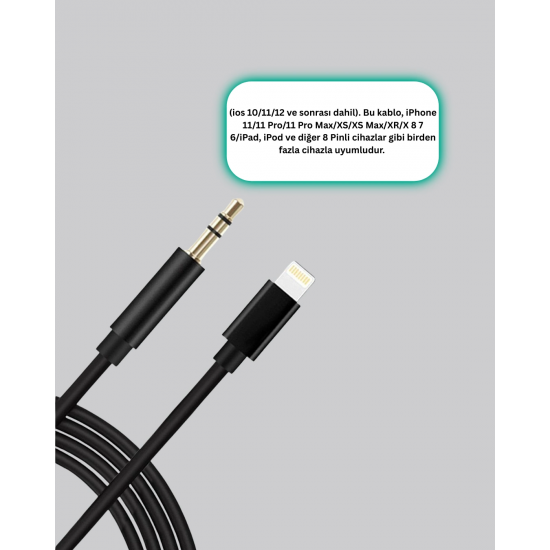 Lightning girişine sahip cihazlarda 3.5 mm jack çıkışı elde etmenizi sağlayan bu Aux dönüştürücü kablo, iPhone 14 ve altı tüm telefon modelleri ile uyumludur. Modern cihazlarda kaldırılan kulaklık girişinin eksikliğini ortadan kaldırarak kullanıcıya yeniden Aux üzerinden bağlantı imkânı sunar. 1 metrelik kablo uzunluğu, hareket özgürlüğü ve rahat kullanım sağlar.Telefonunuzdaki müzikleri, videoları veya diğer medya içeriklerini araba ses sistemlerine, harici hoparlörlere, kulaklıklara ve birçok farklı cihaza yüksek kaliteyle aktarabilirsiniz. Tüm araç modellerindeki Aux girişleriyle uyumlu çalışır. Böylece araç içinde seyahat ederken telefonunuzdaki içerikleri temiz ve güçlü bir ses ile dışarı yansıtabilirsiniz.Stereo ses teknolojisi, daha net ve daha derin bir ses deneyimi sunar. Hem bass hem tiz frekansların dengeli şekilde aktarılması, bu kabloyu yalnızca bir adaptör değil, aynı zamanda kaliteli bir ses çözümü haline getirir. Bağlantı uçlarındaki sağlam kaplama yapısı uzun yıllar sorunsuz kullanım sağlar.Kablo, esnek ve dayanıklı tasarımı sayesinde bükülmelere karşı dirençlidir. Çantanızda, cebinizde veya aracınızda rahatlıkla taşınabilir. Hafif yapısı ile yanınızda taşıması kolaydır.Tak-çalıştır özelliği, ürünü herkes için pratik hale getirir. Ekstra yazılım, uygulama veya ayar gerektirmez. Lightning ucunu cihazınıza takarak 3.5 mm çıkışlı tüm cihazlarda kullanabilirsiniz. Telefonunuzdaki ses kontrolü sorunsuz şekilde çalışır.Bu Aux çevirici kablo, hem günlük kullanım hem de profesyonel ses aktarımı için ideal bir çözümdür. Dayanıklı malzeme yapısı, yüksek ses performansı ve geniş uyumluluk desteği sayesinde kullanıcıların en çok tercih ettiği ürünler arasında yer alır.
