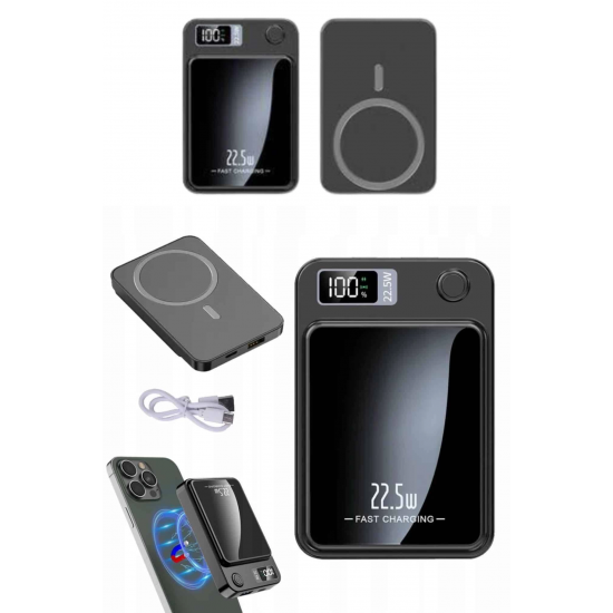 Mey İthalat® Magsafe Powerbank 10.000 mAh 22.5 Watt Hızlı Şarj Göstergeli Kablosuz Taşınabilir Şarj