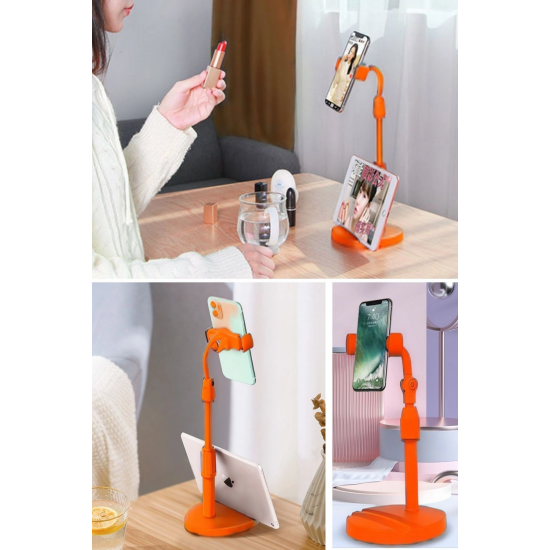 Mey İthalat® Masa Üstü Tablet ve Telefon Tutucu Plastik Aparat Turuncu Telefon Standı