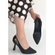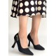 Cerin Siyah Saten Simli Topuklu Ayakkabı