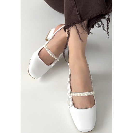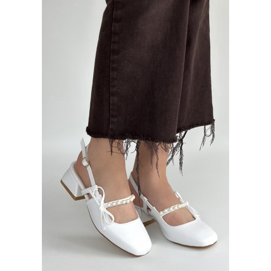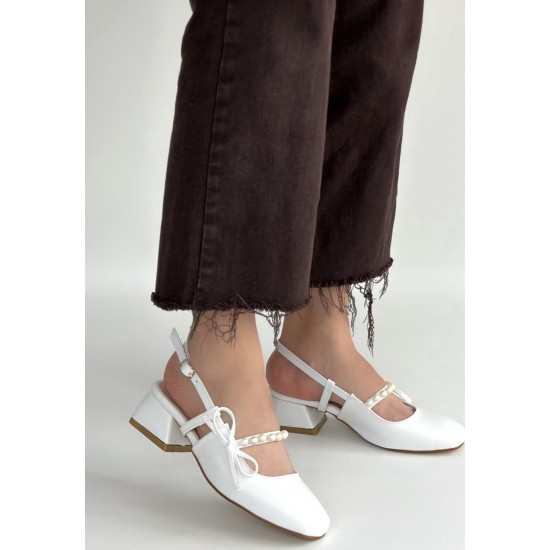 Ceyda Beyaz Cilt Topuklu Ayakkabı
