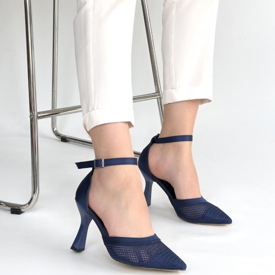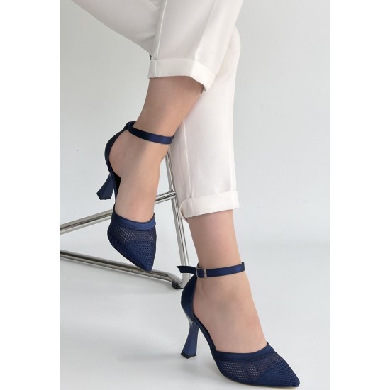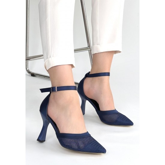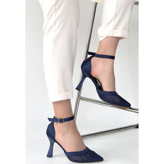 Keny Lacivert Saten Topuklu Ayakkabı