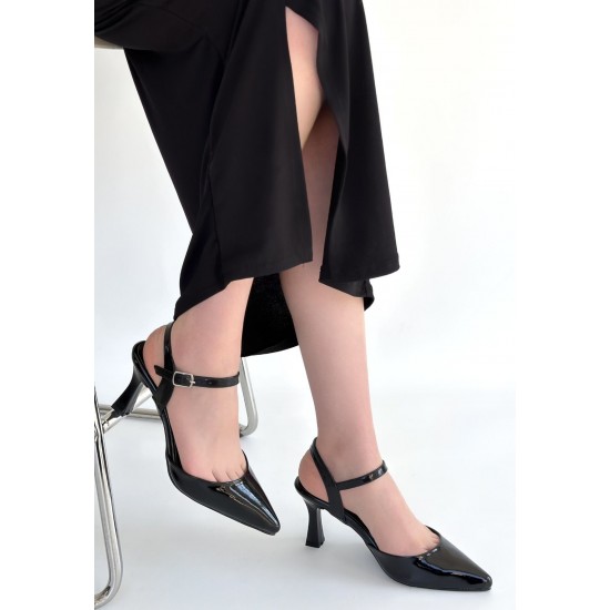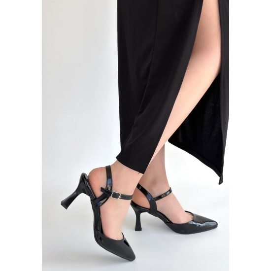Suden Siyah Rugan Topuklu Ayakkabı