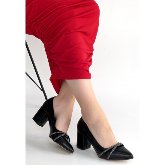 Zenta Siyah Cilt Topuklu Ayakkabı