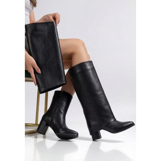Wila Siyah Cilt Topuklu Tak Çıkar Çizme