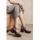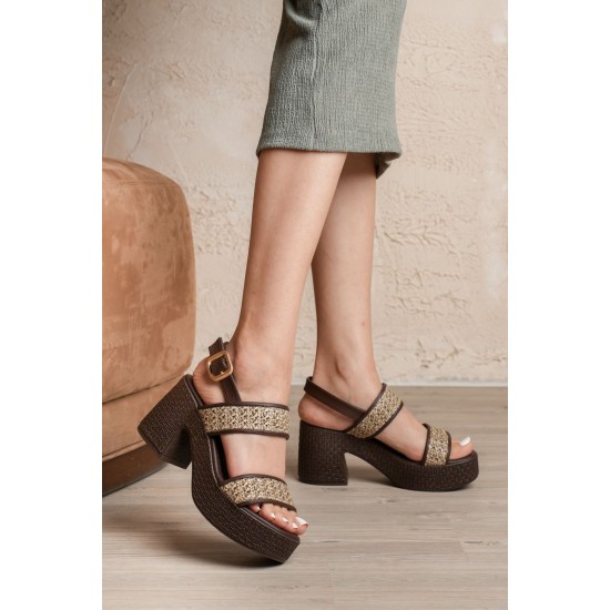 Wowi Kahverengi Cilt Baskılı Topuklu Sandalet