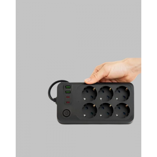 Termal akım korumalı 6 prizli multi uzatma kablosu, hem güvenlik hem de pratik kullanım sunan kompakt bir enerji çözümüdür. 2500W kapasitesiyle güçlü cihazlarla uyumludur. USB ve Type-C çıkışları sayesinde telefon ve tabletler en hızlı şekilde şarj edilebilir. Termal koruma ve 10A güvenlik ünitesi elektronik cihazlarınızı aşırı yüklenme ve dalgalanmalara karşı korur. 2 metrelik kablo uzunluğu kullanım esnekliği sağlar.