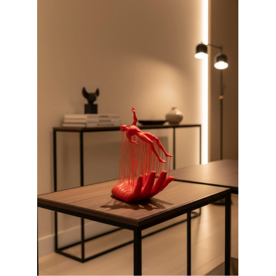 Modern çizgilere sahip kırmızı el formunda insan figürü biblo, soyut ve estetik görünümüyle yaşam alanlarınıza sanatsal bir dokunuş ekler. Raf, kitaplık, TV ünitesi ve konsol üstü kullanım için uygundur. Kompakt 12x18 cm ölçüsü sayesinde farklı alanlarda kolayca konumlandırılabilir. Dekorasyonda fark yaratmak isteyenler için hem şık hem de anlamlı bir tamamlayıcıdır.