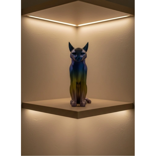 Koyu Rainbow Kedi biblo, dekorasyonda farklılık arayanlar için özel bir tasarıma sahiptir. Renk geçişleri ışığa göre değişen görsel bir etki sunar ve bulunduğu ortama hareket katar. 18×25 cm boyutlarıyla ne çok büyük ne de küçük olup ev içinde rahatça konumlandırılabilir. Salon, ofis veya çalışma alanlarında şık ve modern bir atmosfer oluşturmak isteyenler için ideal bir dekoratif objedir.