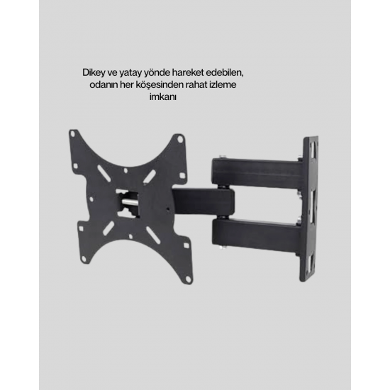 LED ve LCD televizyonlar için uyumlu olan bu duvar askı aparatı, modern dizaynı ile yaşam alanlarınıza şıklık katar. Hareketli mekanizması sayesinde televizyonunuzu farklı açılardan rahatça izleyebilirsiniz. Özellikle dar alanlarda kullanım için avantaj sağlar.Dayanıklı malzemeden üretilmiş olup uzun süreli kullanım sunar. Montaj aparatları ile birlikte gönderilir ve kullanıcıya kolay kurulum imkânı tanır.
