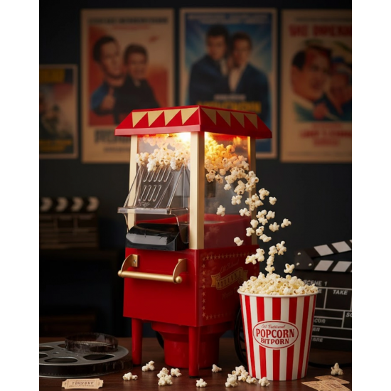 Nostaljik görünüme sahip bu yağsız popcorn makinesi, ailece keyifli anlar yaşamanız için tasarlanmıştır. Sıcak hava ile çalışan sistemi sayesinde yağ eklemeden mısır patlatır ve sağlıklı atıştırmalıklar sunar. Yapışmaz patlatma yüzeyi, mısırların eşit şekilde patlamasını sağlar.Tek seferde fazla miktarda popcorn hazırlayabilme özelliği sayesinde kalabalık ortamlarda rahat kullanım sunar. 5 dakika içinde hazır hale gelen popcorn, zamandan tasarruf sağlar. Film geceleri, çocuk etkinlikleri ve ev eğlenceleri için idealdir.Hem eğlenceli hem fonksiyonel yapısı ile öne çıkan bu popcorn makinesi, sağlıklı yaşamı tercih eden kullanıcılar için pratik bir çözümdür.
