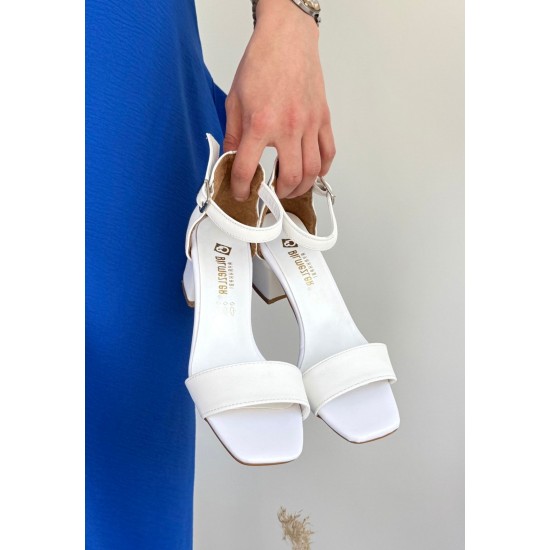 Yenta Beyaz Cilt Tek Bant Topuklu Ayakkabı